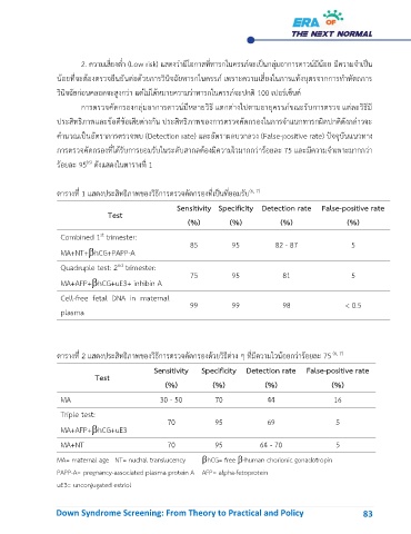 ตารางที่ 2 แสดงประสิทธิภาพของวิธีการตรวจคัดกรองด้วยวิธีต่าง ๆ ที่มีความไวน้อยกว่าร้อยละ 75 (6, 7)