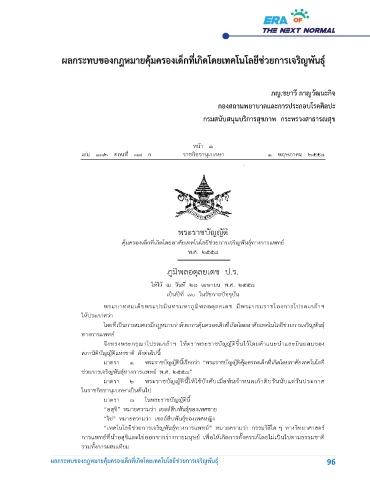ผลกระทบของกฎหมายคุ้มครองเด็กที่เกิดโดยเทคโนโลยีช่วยการเจริญพันธุ์ ภญ.ชยาวี กาญวัฒนะกิจ กองสถานพยาบาลและการประกอบโรคศิลปะ กรมสนับสนุนบริการสุขภาพ กระทรวงสาธารณสุข ผลกระทบของกฎหมายคุ้มครองเด็กที่เกิดโดยเทคโนโลยีช่วยการเจริญพันธุ์ 96