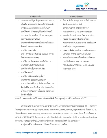 ตารางที่ 2 แสดงการซักประวัติและตรวจร่างกายที่สำคัญในการดูแลคสมรสที่มีภาวะมีบุตรยาก (1, 2, 8)