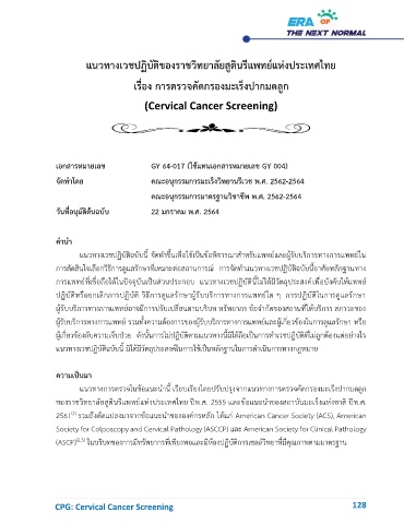 ของราชวิทยาลัยสูตินรีแพทย์แห่งประเทศไทย ปีพ.ศ. 2555 และข้อแนะนำของสถาบันมะเร็งแห่งชาต ปีพ.ศ.