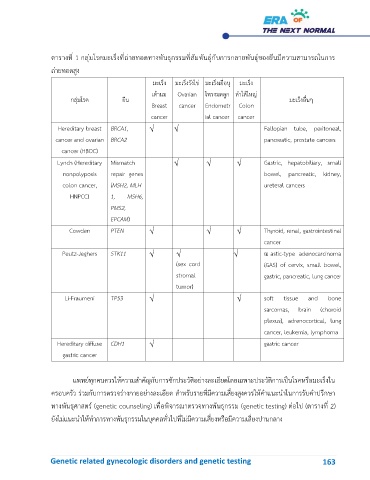 ตารางที่ 1 กลุ่มโรคมะเร็งที่ถ่ายทอดทางพันธุกรรมที่สัมพันธุ์กับการกลายพันธุ์ของยีนมีความสามารถในการ