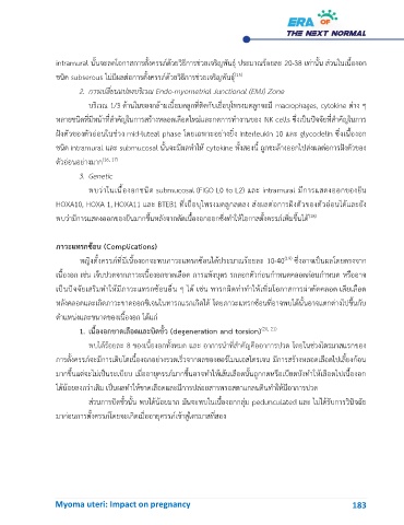 intramural นั้นจะลดโอกาสการตั้งครรภ์ด้วยวิธีการช่วยเจริญพันธุ์ ประมาณร้อยละ 20-38 เท่านั้น ส่วนในเนื้องอก