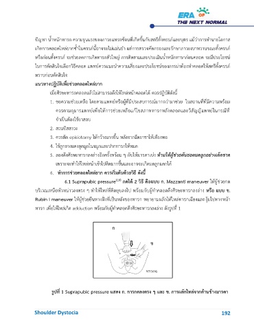 ทารก เพื่อให้ไหล่เกิด adduction พร้อมกับผู้ทำคลอดดึงศีรษะทารกลงล่าง ดังรูปที่ 1
