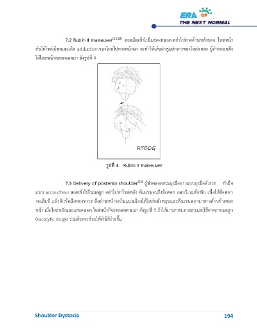 7.2 Rubin II maneuver (21,22) สอดมือเข้าไปในช่องคลอด คลำไปทางด้านหลังของ ไหล่หน้า