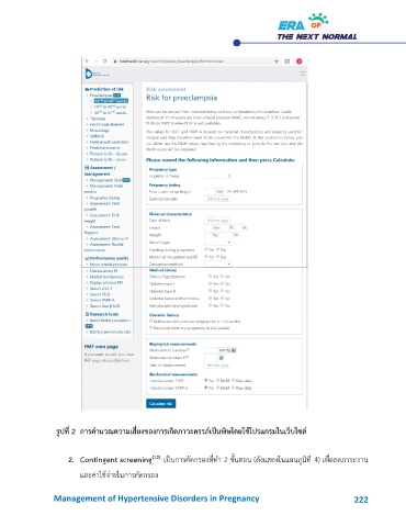 รูปที่ 2 การคำนวณความเสี่ยงของการเกิดภาวะครรภ์เป็นพิษโดยใช้โปรแกรมในเว็บไซต ์