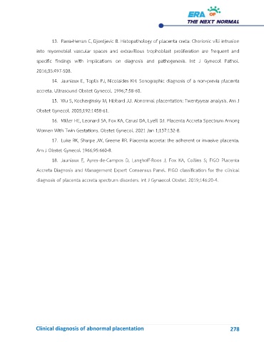 13.  Parra-Herran C, Djordjevic B. Histopathology of placenta creta: Chorionic villi intrusion