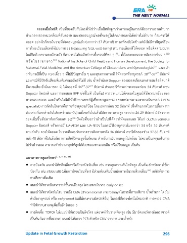 Doppler ผิดปกติ และการทดสอบ BPP บ่งชี้ไม่ด เป็นต้น) ควรวางแผนให้คลอดในศูนย์ที่มีความพร้อมของ