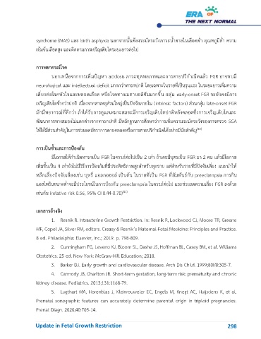 มีโอกาสให้กำเนิดทารกเป็น FGR ในครรภ์ต่อไปเป็น 2 เท่า ถ้าเคยมีบุตรเป็น FGR มา 2 คน แลวมีโอกาส
