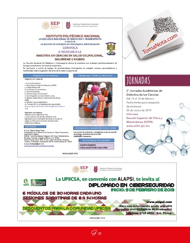 JORNADAS 2° Jornadas Académicas de Didáctica de las Ciencias Del 12 al 14 de febrero Fecha límite para recepción de extensos: 25 de enero de 2019 Informes: Escuela Superior de Física y Matemáticas (ESFM) www.esfm.ipn.mx 25
