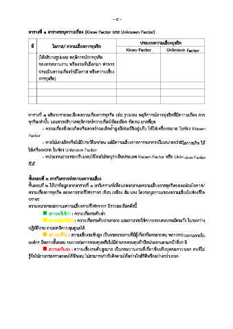 ตารางที่ 1 ตารางระบุความเสี่ยง (Know Factor และ Unknown Factor)