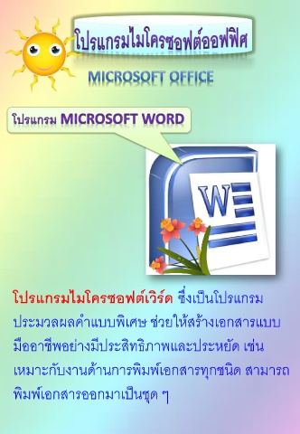 ็ ่ โปรแกรมไมโครซอฟต์เวิร์ด ซึงเปนโปรแกรม ประมวลผลค ำแบบพิเศษ ช่วยให้สร้ำงเอกสำรแบบ ี ี ิ มออำชพอย่ำงมประสิทธภำพและประหยัด เช่น ื เหมำะกับงำนด้ำนกำรพมพ์เอกสำรทุกชนด สำมำรถ ิ ิ ิ ็ พมพ์เอกสำรออกมำเปนชุด ๆ