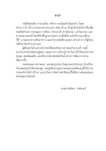 ผู้เขียนหวังเป็นอย่างยิ่งว่าหนังสือส่งเสริมการอ่านชุด คำควบกล้ำ ชุดน