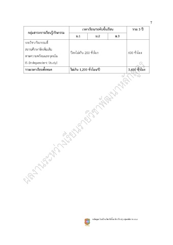 รวมเวลาเรียนทั้งหมด ไม่เกิน 1,200 ชั่วโมง/ปี 3,600 ชั่วโมง