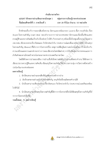ค าอธิบายรายวิชา