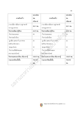 ภาคเรียนที่ 1 ชม. ภาคเรียนที่ 2 ชม.