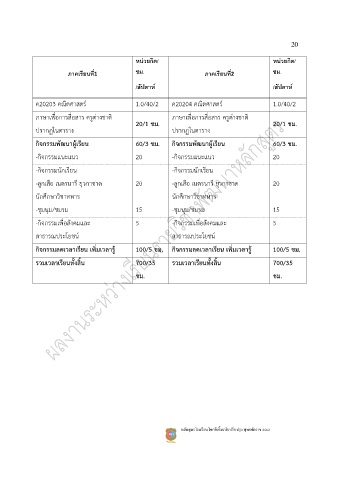 ค20203 คณิตศาสตร์ 1.0/40/2 ค20204 คณิตศาสตร์ 1.0/40/2
