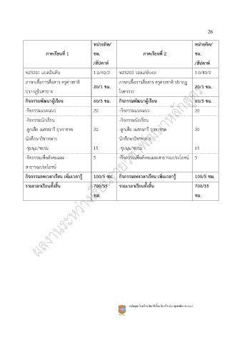 ภาคเรียนที่ 1 ชม. ภาคเรียนที่ 2 ชม.