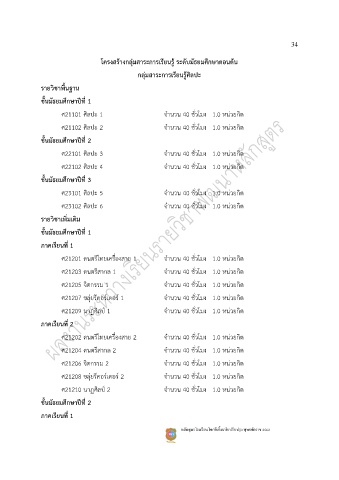 โครงสร้างกลุ่มสาระการเรียนรู้ ระดับมัธยมศึกษาตอนต้น