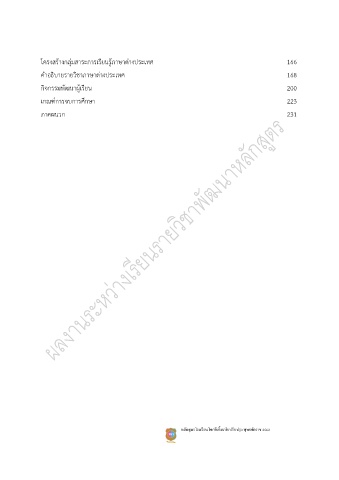 โครงสร้างกลุ่มสาระการเรียนรู้ภาษาต่างประเทศ 166 ค าอธิบายรายวิชาภาษาต่างประเทศ 168 กิจกรรมพัฒนาผู้เรียน 200 เกณฑ์การจบการศึกษา 223 ภาคผนวก 231 ั ุ หลักสตรโรงเรยนโคกอเกิ้งฉบับปรบปรง พุทธศักราช 2562 ี ู ี