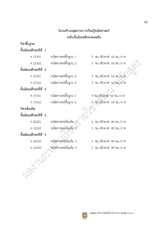 ค 21102 คณิตศาสตร์พื้นฐาน 2 3 ชม./สัปดาห์ 60 ชม./ภาค