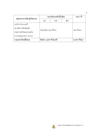 รวมเวลาเรียนทั้งหมด ไม่เกิน 1,200 ชั่วโมง/ปี 3,600 ชั่วโมง