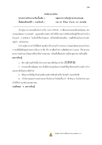 ค าอธิบายรายวิชา