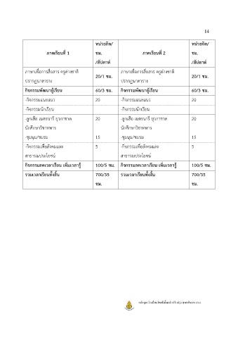 ภาคเรียนที่ 1 ชม. ภาคเรียนที่ 2 ชม.