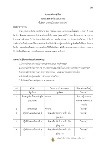 กิจกรรมชุมนุม ซูโดกุ (Sudoku)