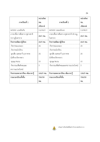 ภาคเรียนที่ 1 ชม. ภาคเรียนที่ 2 ชม.
