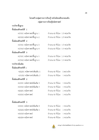 โครงสร้างกลุ่มสาระการเรียนรู้ ระดับมัธยมศึกษาตอนต้น