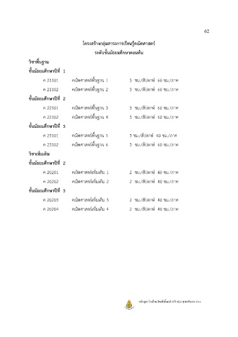 ค 21102 คณิตศาสตร์พื้นฐาน 2 3 ชม./สัปดาห์ 60 ชม./ภาค