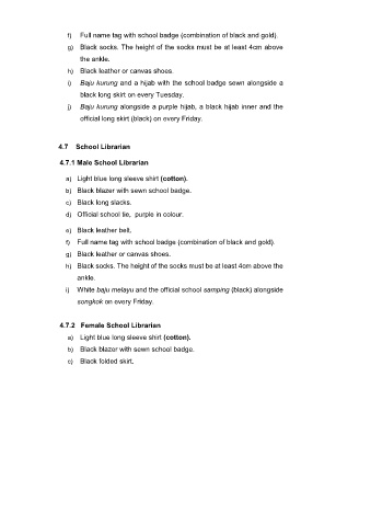 i) Baju kurung and a hijab with the school badge sewn alongside a
