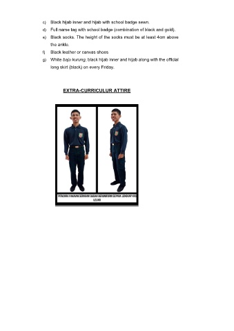 g) White baju kurung, black hijab inner and hijab along with the official