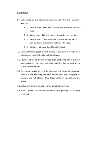 5.1 Male pupils are not allowed to keep long hair. The term long hair