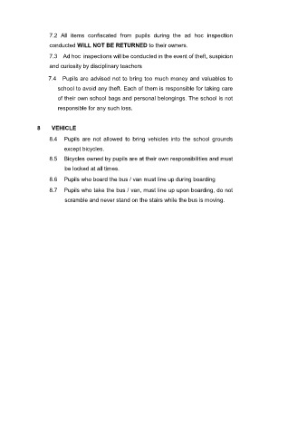 8.7 Pupils who take the bus / van, must line up upon boarding, do not