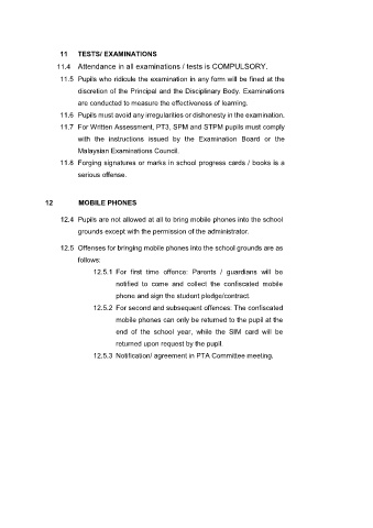 11.7 For Written Assessment, PT3, SPM and STPM pupils must comply
