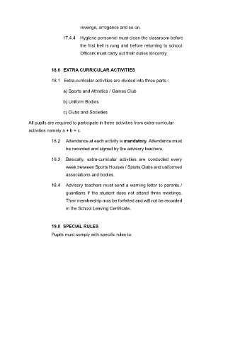 18.0 EXTRA CURRICULAR ACTIVITIES