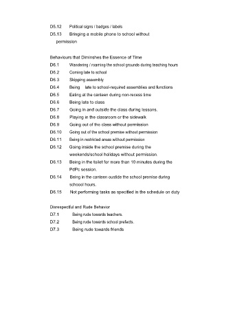 D6.1 Wandering / roaming the school grounds during teaching hours
