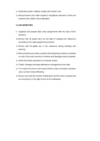 11. Supervise pupils to always comply with school rules.