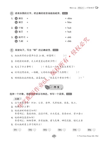 五 阅读句子,写出“啊”的正确读音。 5.2.1