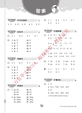 练习 1 汉字的演变..................... 2 二 1. C 2. B 3. D 4. C