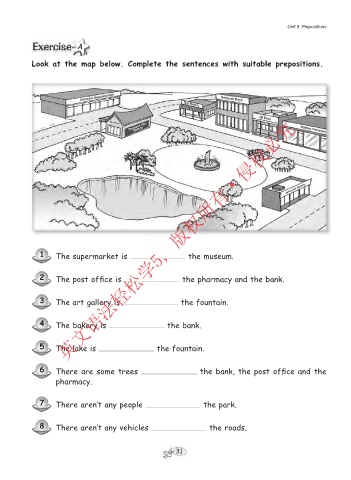 Look at the map below. Complete the sentences with suitable prepositions.