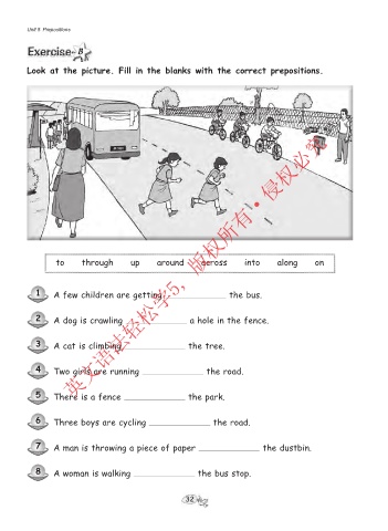 Look at the picture. Fill in the blanks with the correct prepositions.