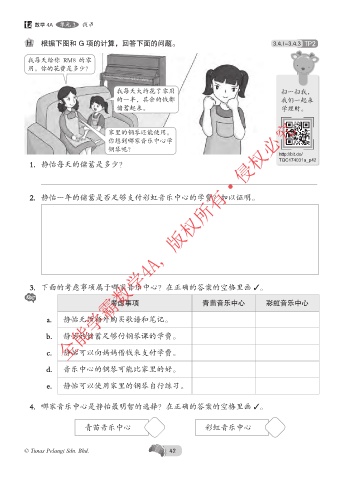 4. 哪家音乐中心是静怡最明智的选择?在正确的答案的空格里画 ✓。