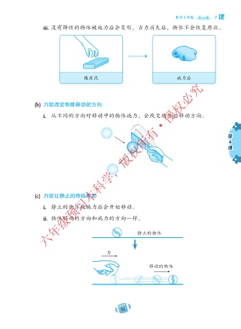 iii. 没有弹性的物体被施力后会变形。当力消失后,物体不会恢复原状。