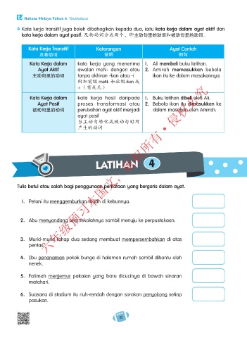Kata kerja transitif juga boleh dibahagikan kepada dua, iaitu kata kerja dalam ayat aktif dan