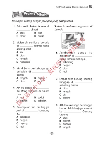 1. Buku cerita kakak terletak di Soalan 6 berdasarkan gambar di