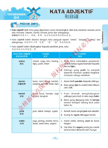 Kata adjektif boleh disertai dengan kata penguat seperti “amat”, “sangat”, “paling” dan Tatabahasa