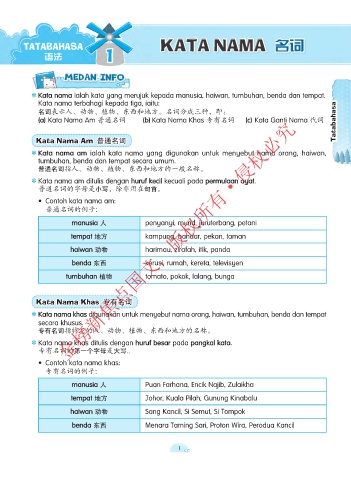(a) Kata Nama Am 普通名词 (b) Kata Nama Khas 专有名词 (c) Kata Ganti Nama 代词 Tatabahasa