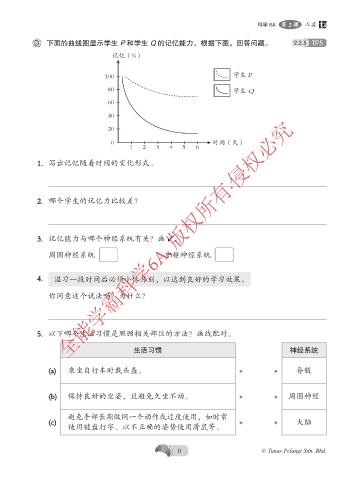 D 下面的曲线图显示学生 P 和学生 Q 的记忆能力。根据下图,回答问题。 2.2.5 TP5